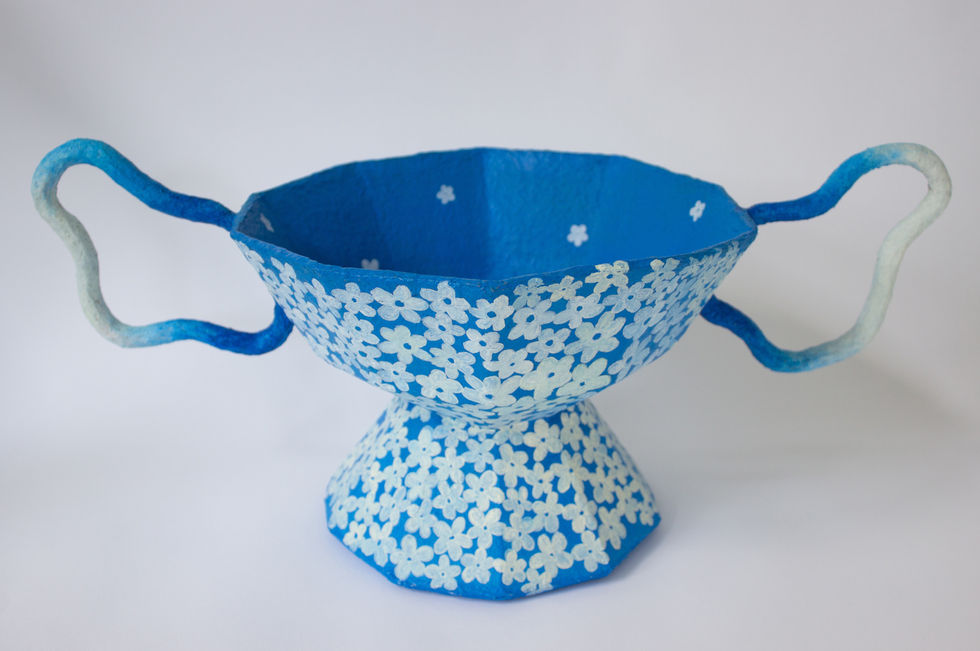 Handcrafted from scratch using scrap paper and paper mache